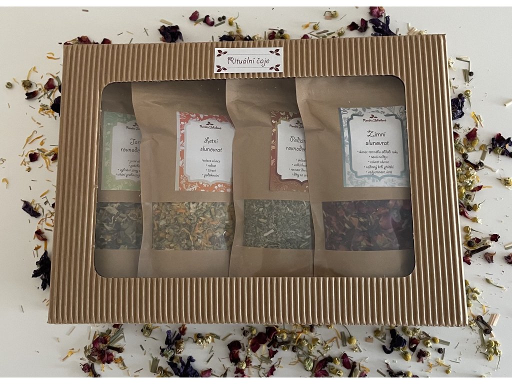 Dárkový set čtyř rituálních bylinných čajů inspirovaných svátky Kola roku.